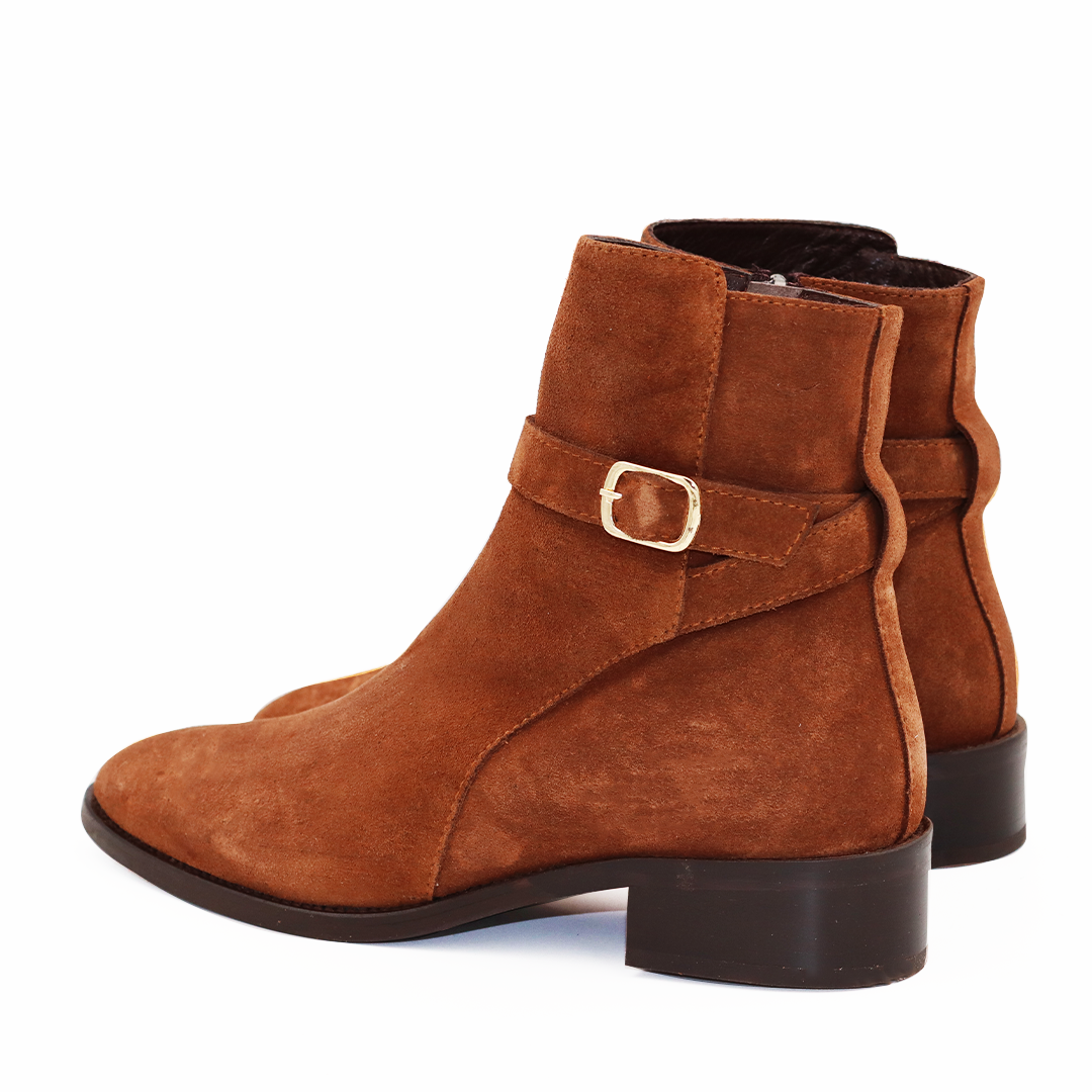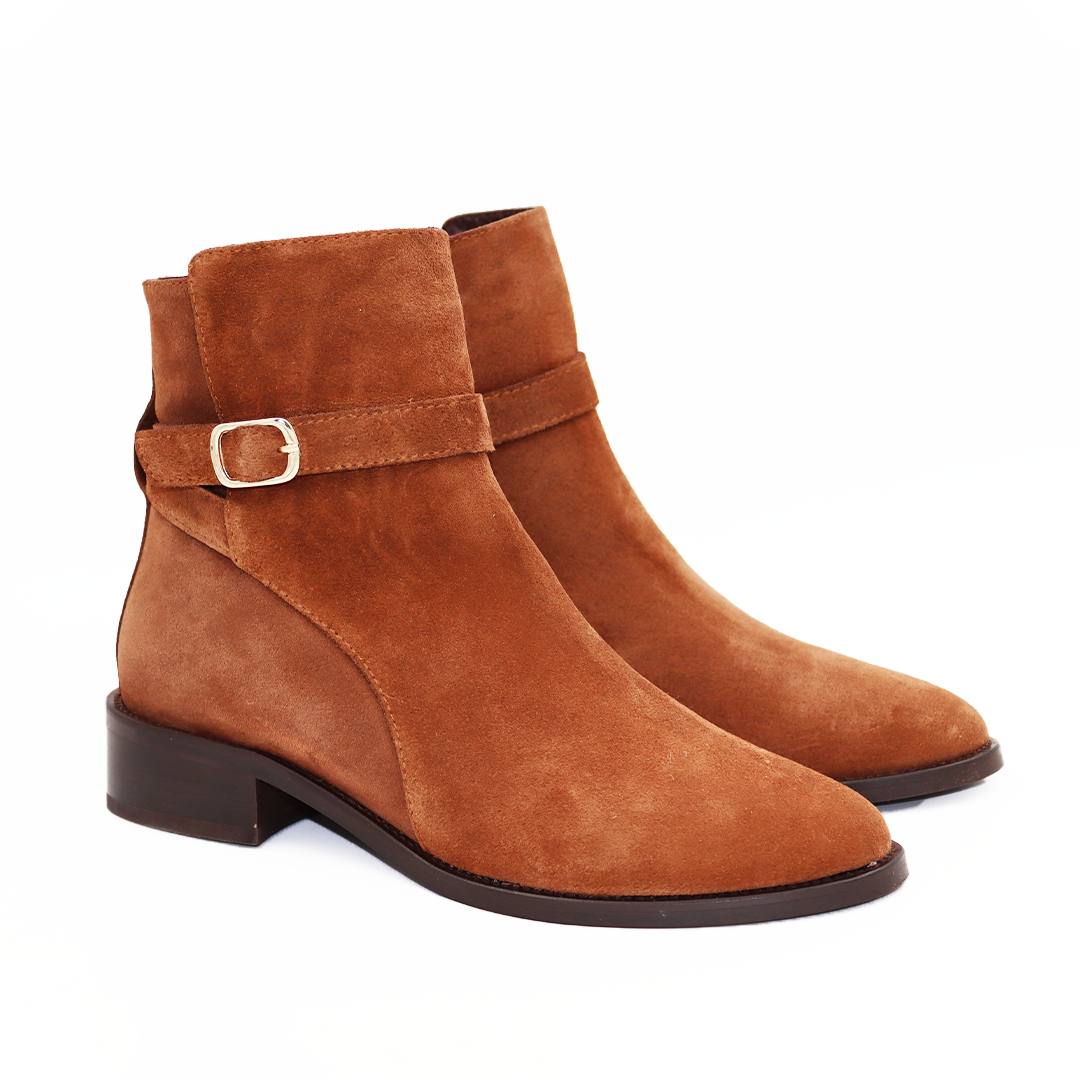Noa Noir braon velur kožne ravne gležnjače sa kaišem oko risa i zlatnom šnalom.