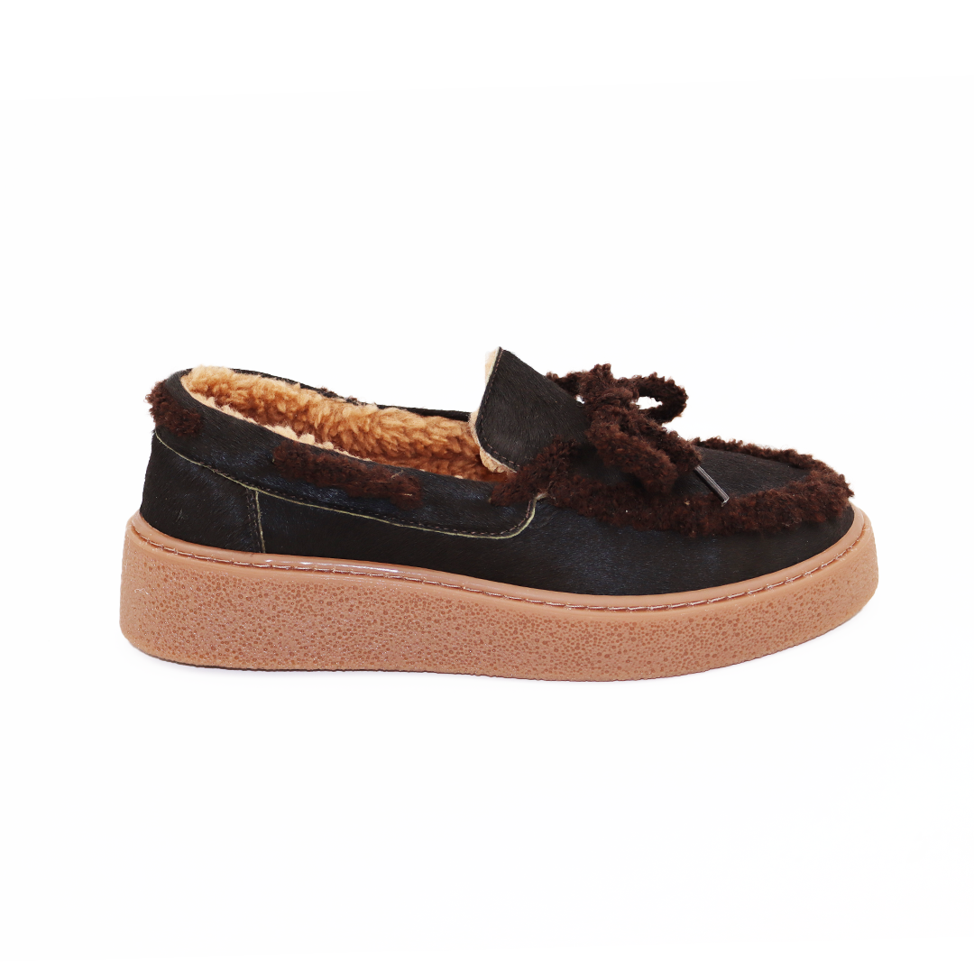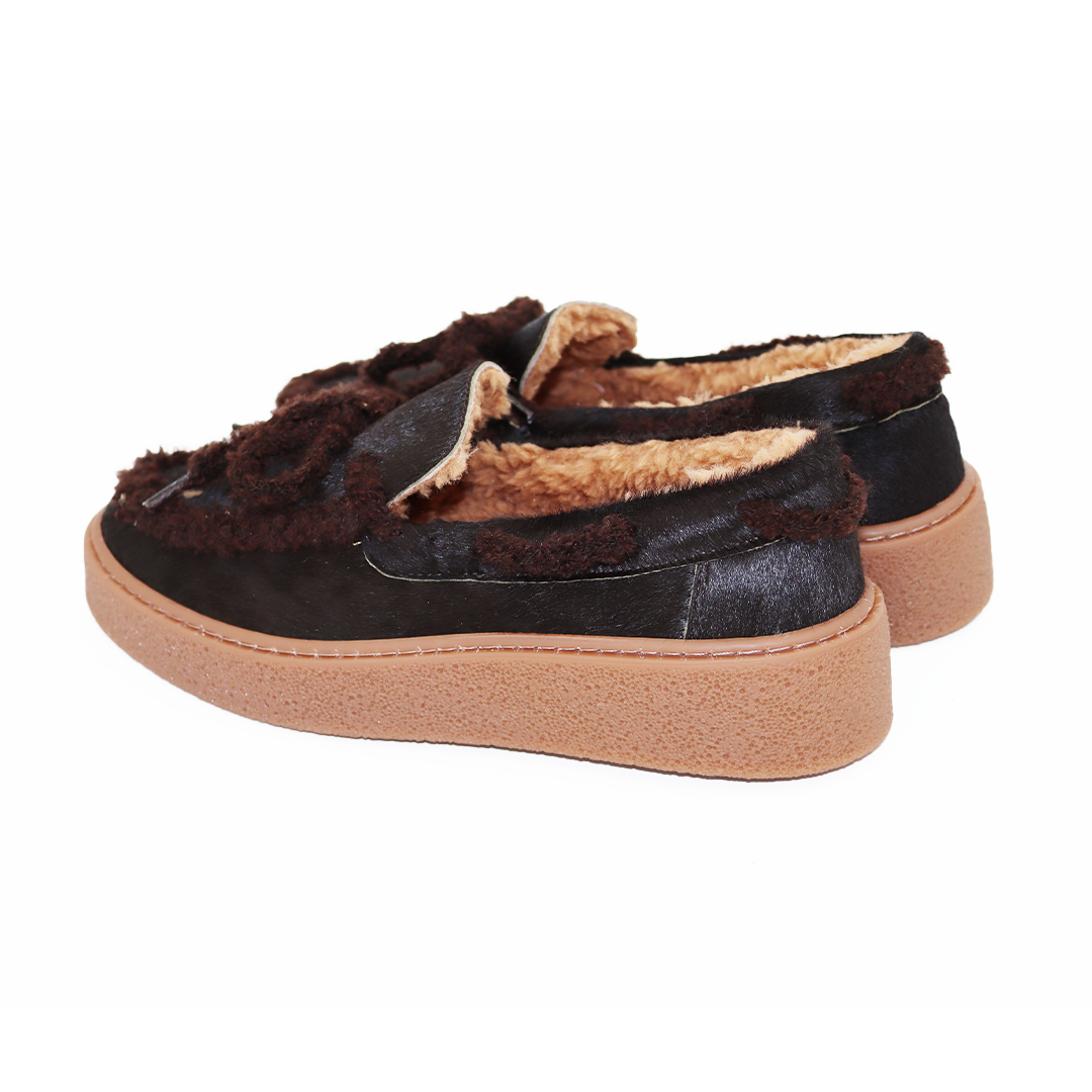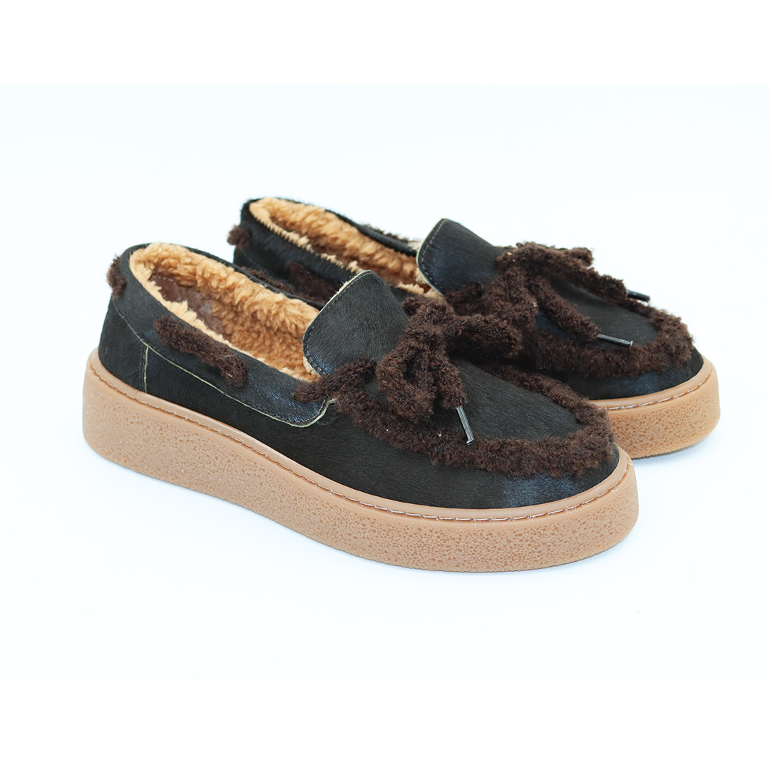 Noa Noir postavljene mokasine u braon dlaci sa dekorativnim pertlana na vrhu.