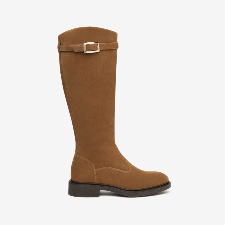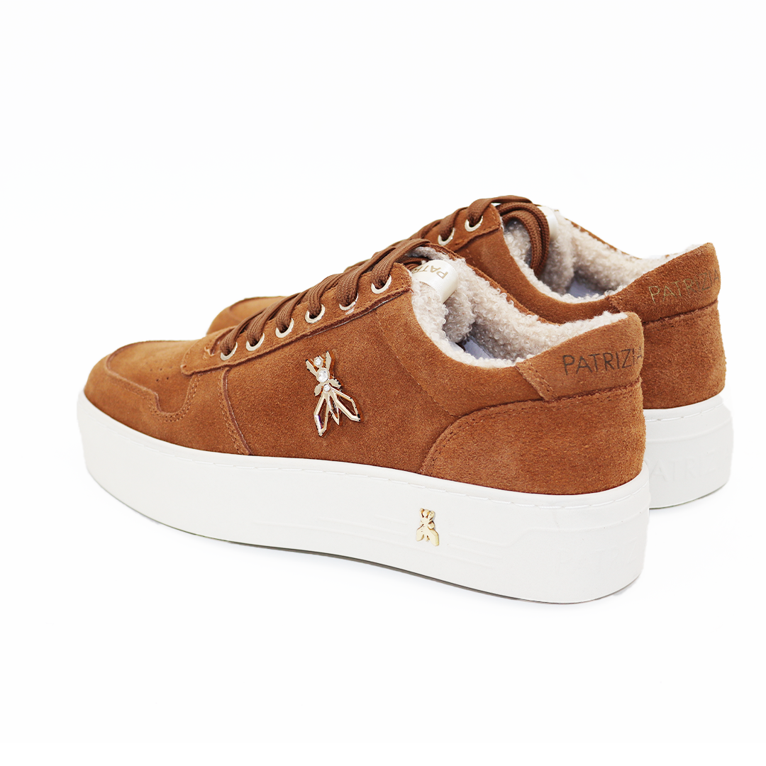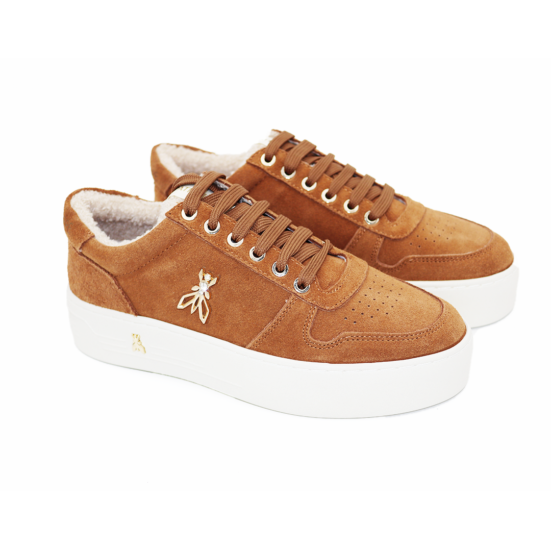 Patrizia Pepe kamel kožne patike u veluru sa zlatnom šnalom, svetlo krem đonom i bež tedijem u postavi