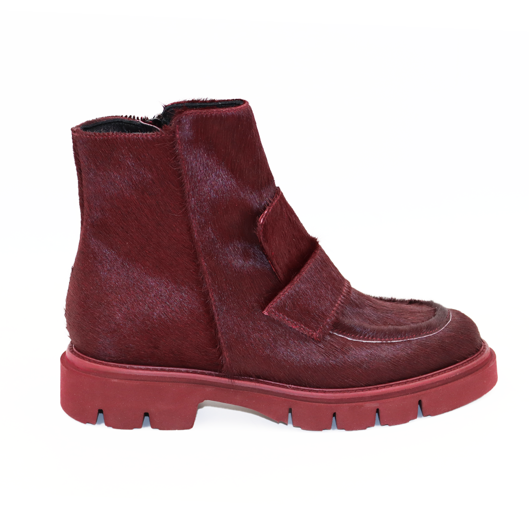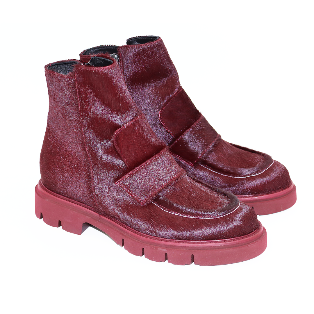 Paulette bordo gležnjače u dlaci, postavljene kožom, na bordo đonu