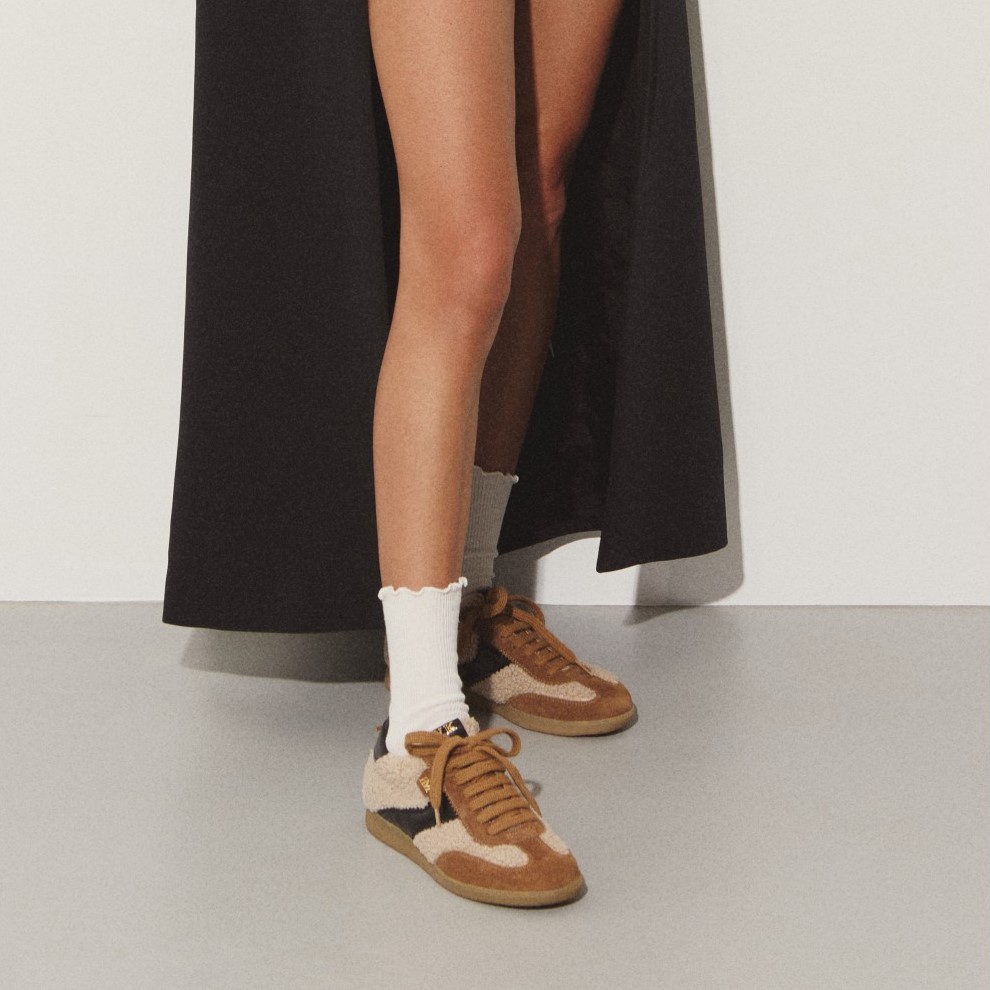 Pedro Miralles patike na tanjem đonu u svetlo braon boji sa bež tedijem sa strane i crnim kožnim detaljima