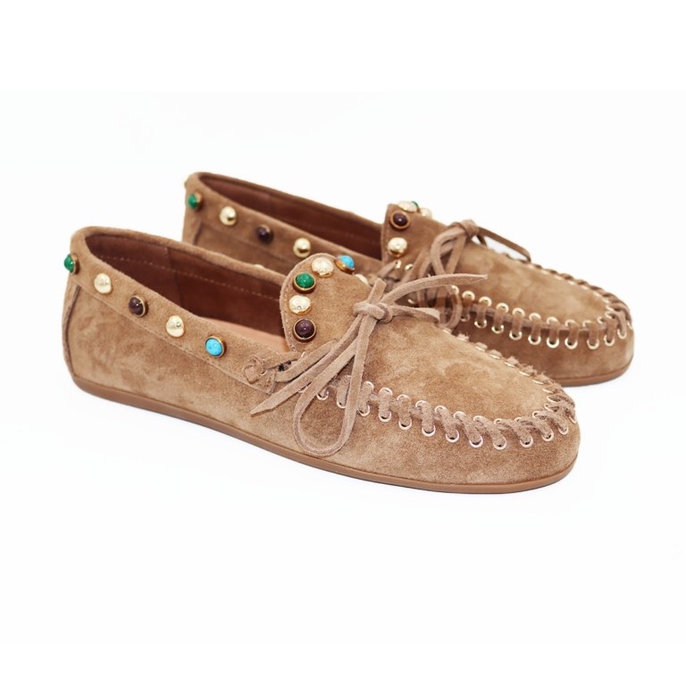 Renzoni kožne italijanske ručno-izrađene ravne cipele u kamel boji sa zlatnom IR šnalom na zaobljenom vrhu
