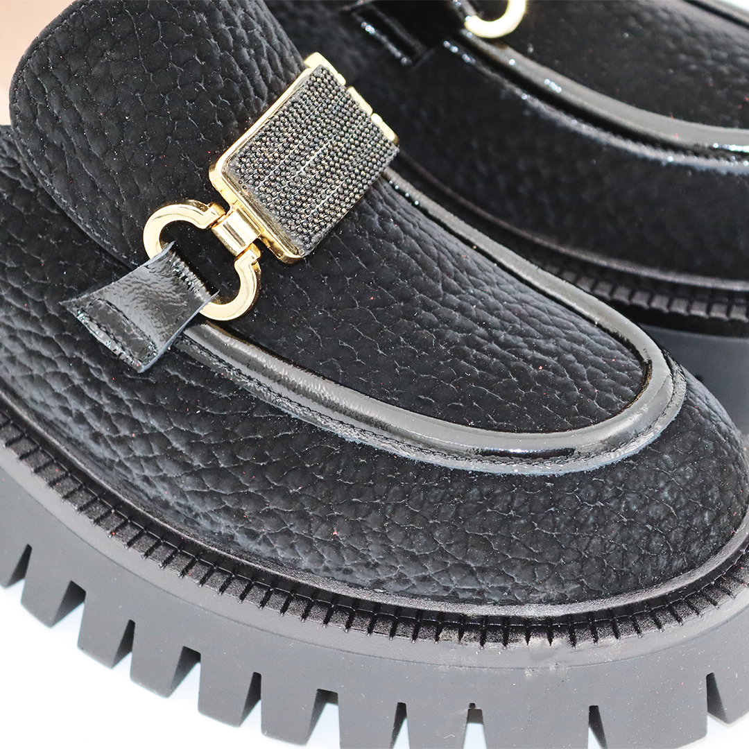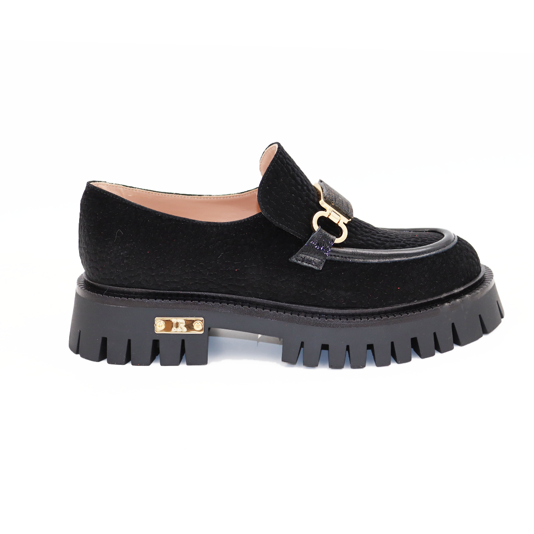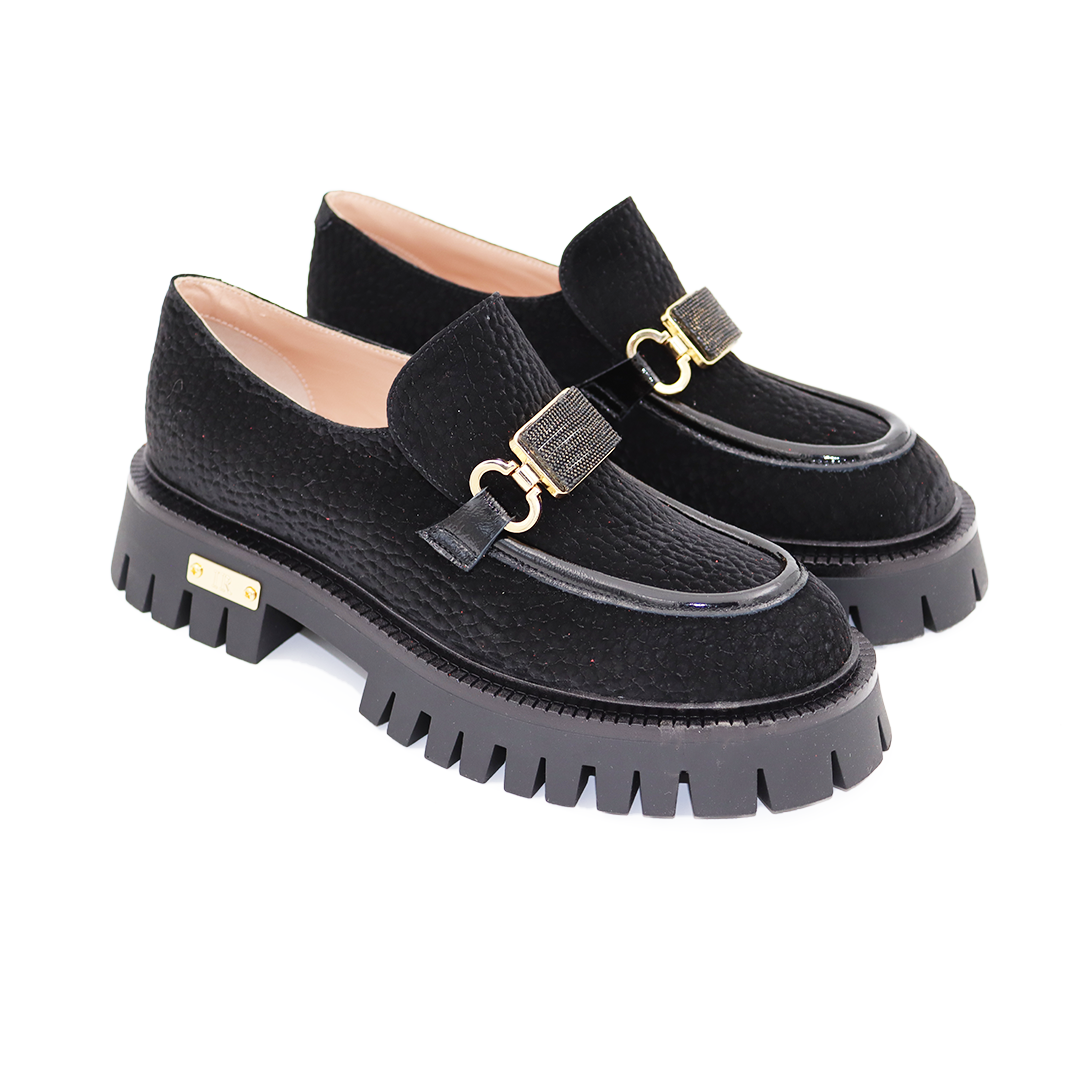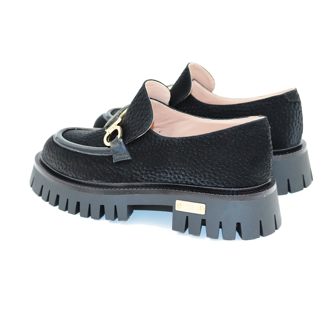 Renzoni kožne crne italijanske mokasine na jačem đonu sa diskretnom šnalom i kožom u diskretnom radu