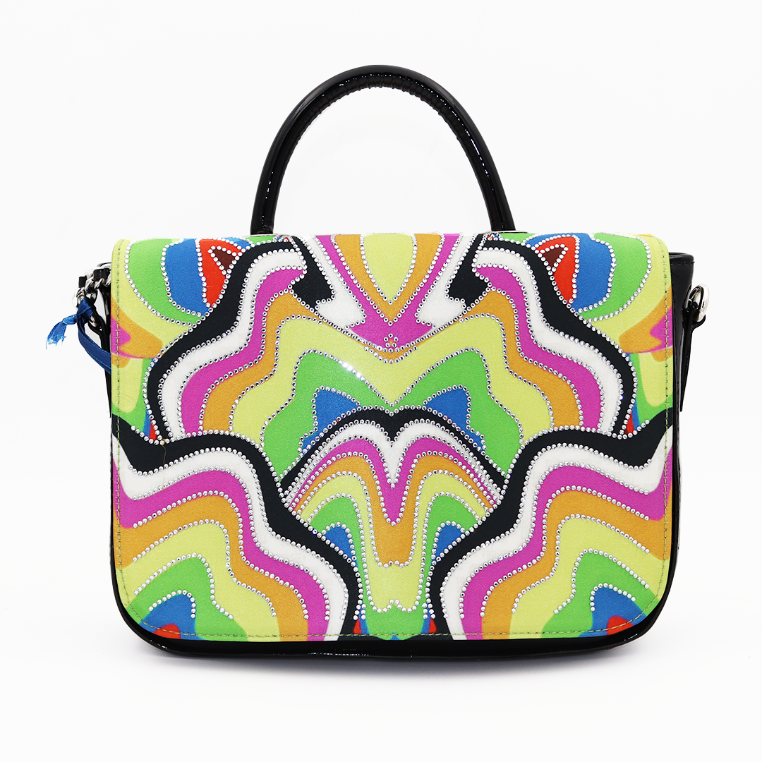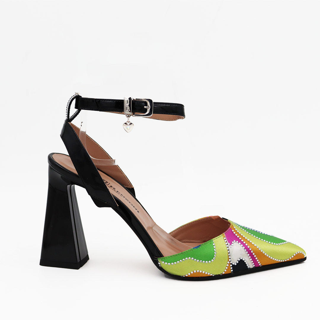 Ilasio Renzoni kožne italijanske sandale na potpetici od 9 cm sa multikolor dezenom na špicu.