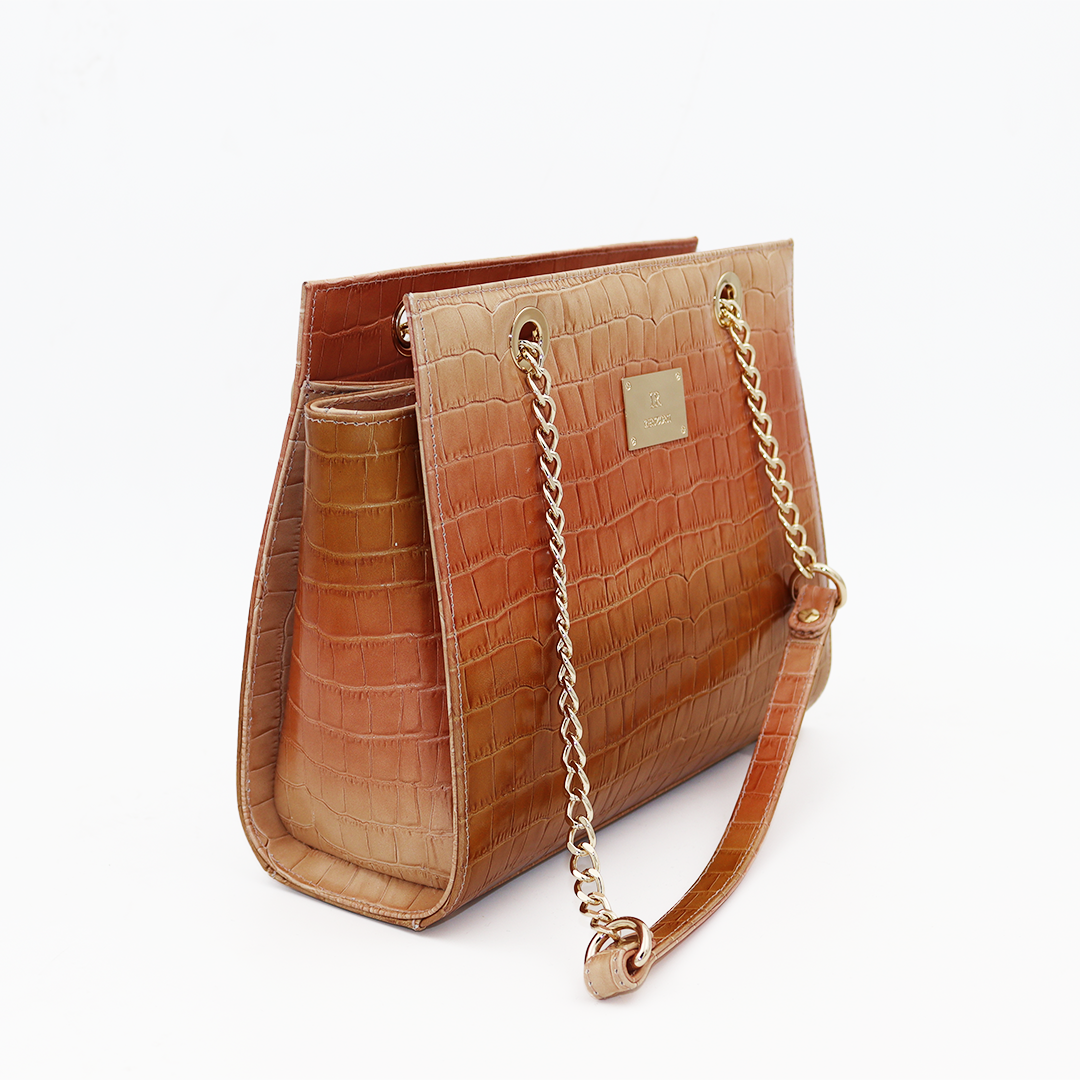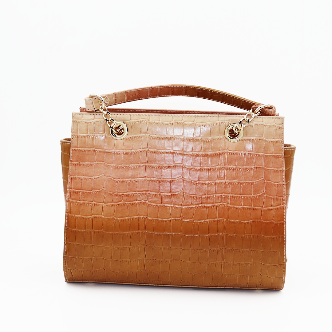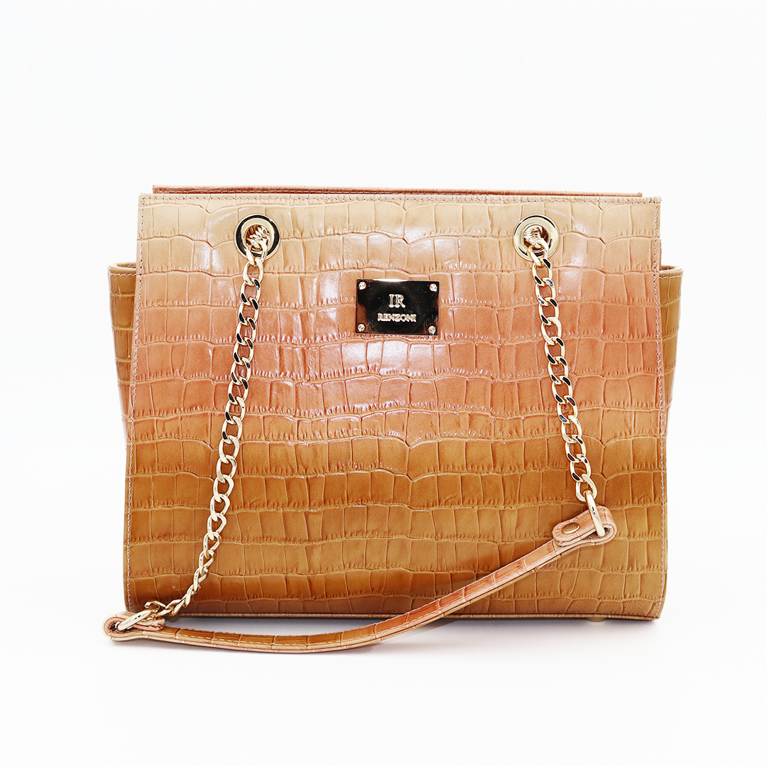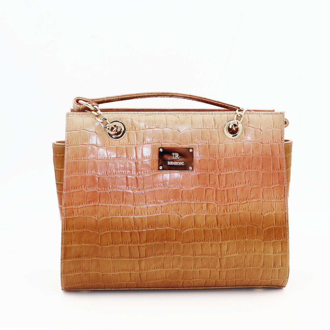 Ilasio Renzoni italijanska ručno izrađena kožna torba nijansirana od bež ka kamel sa zlatnim detaljima.