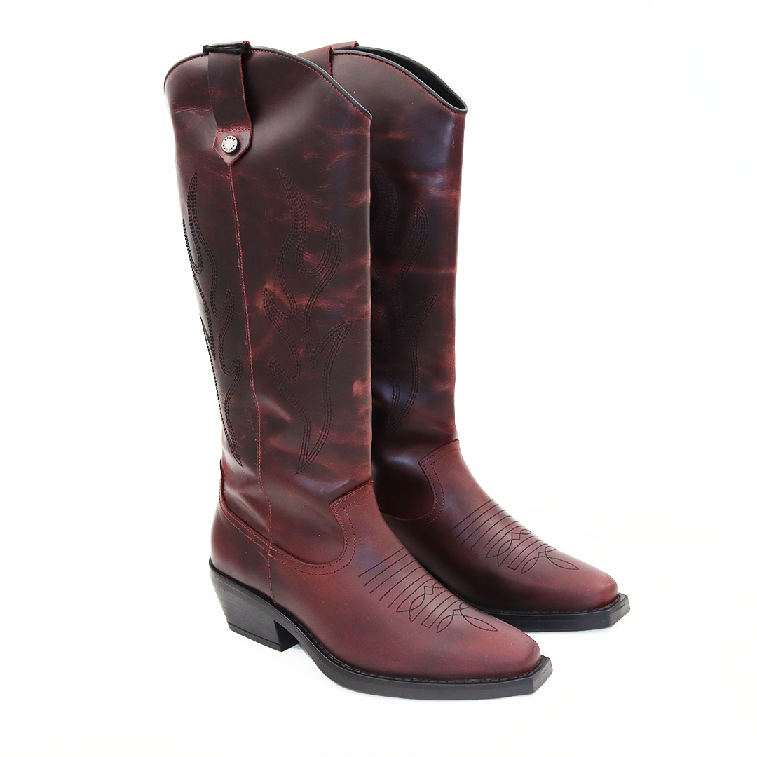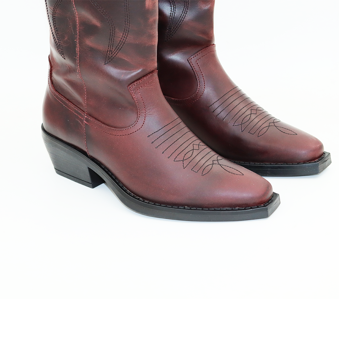 Steve Madden WESSEL kožne kaubojke u tamno brodo koži sa končanim radom i malom blok petom