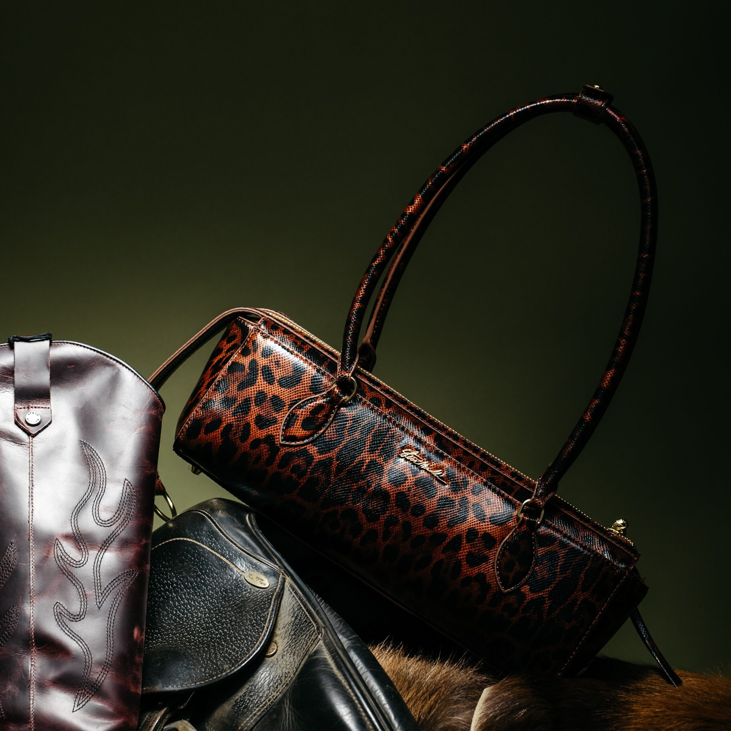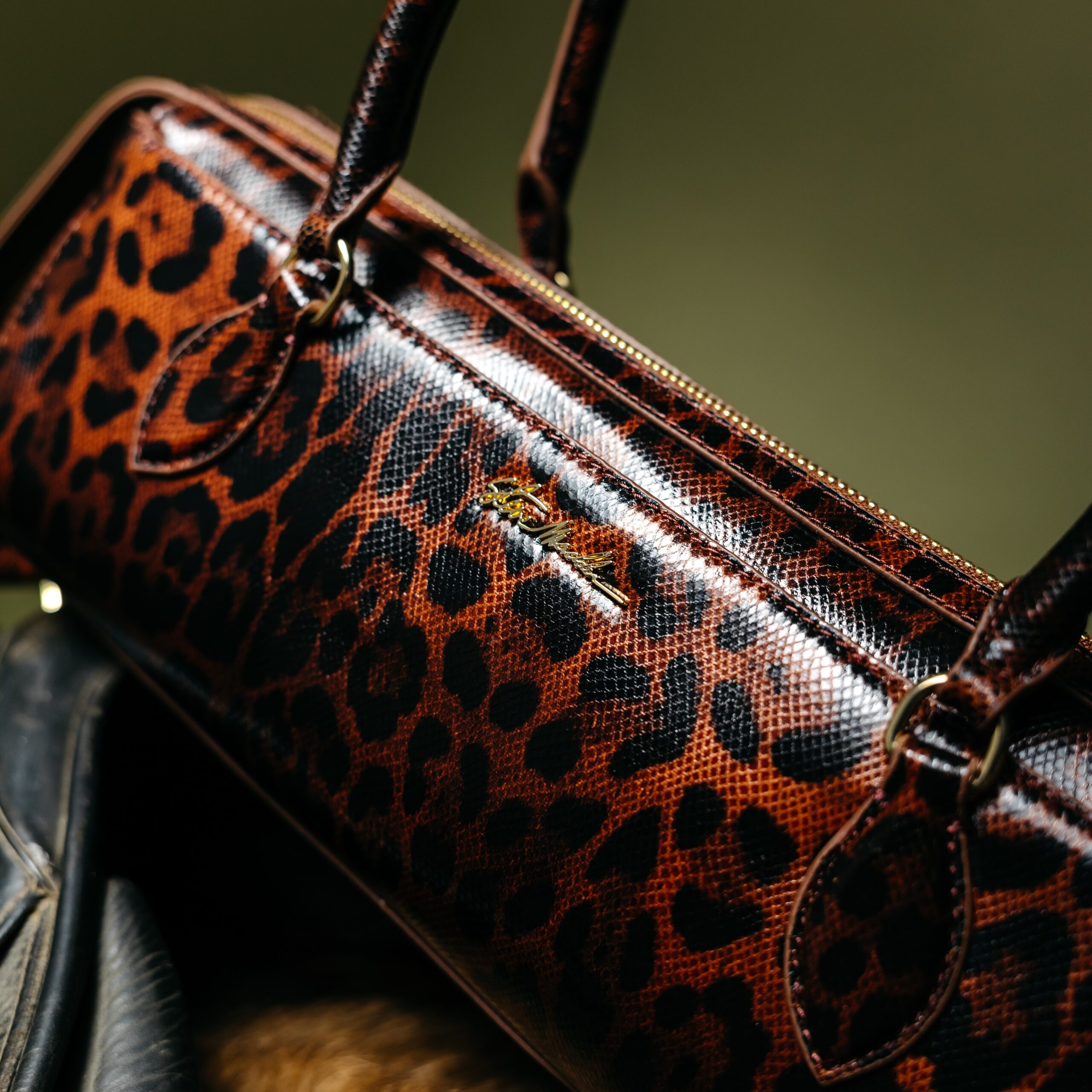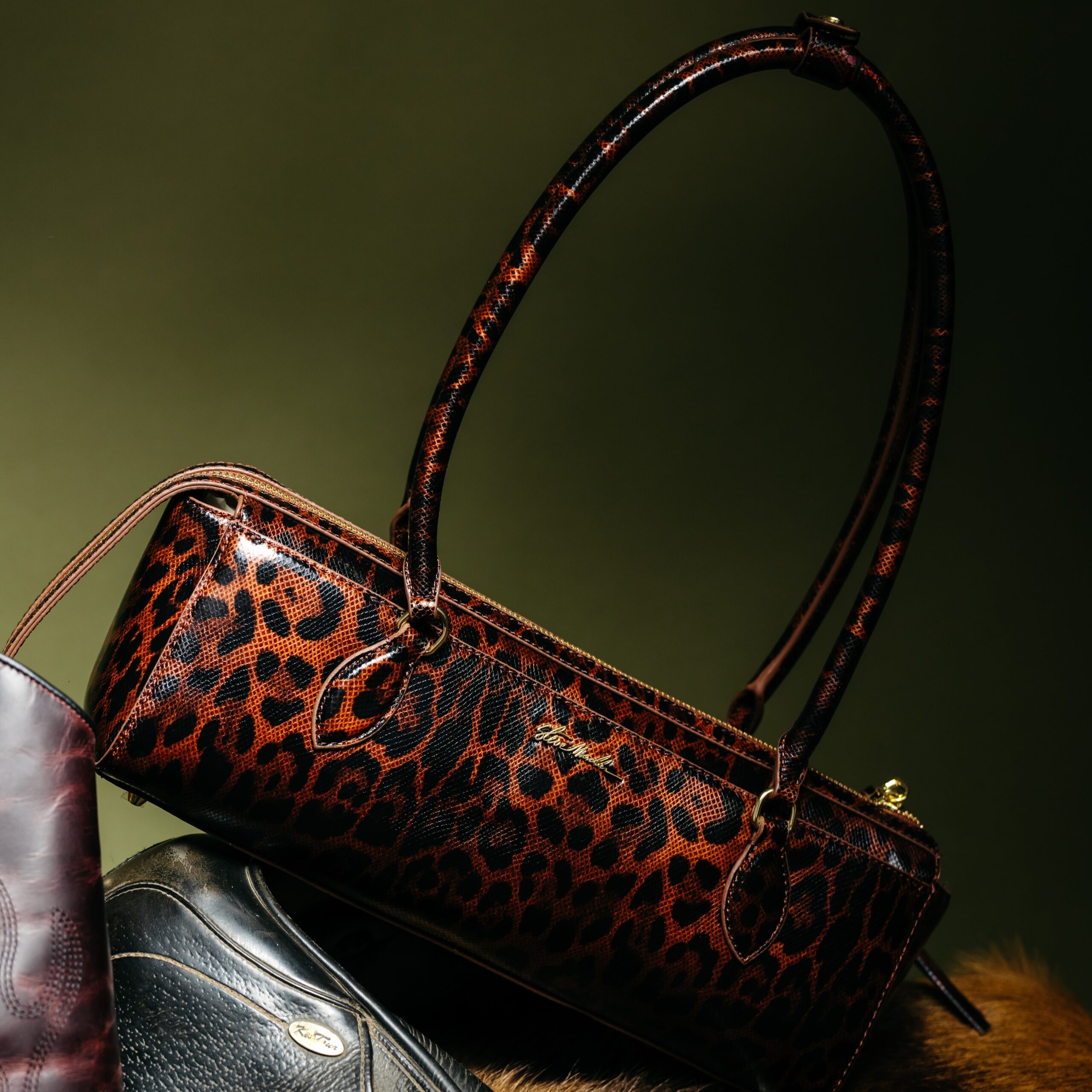 Steve Madden torba pravougaonog oblika sa velikim ručkama u tamno braon leopard printu i zlatnim diskretnim logoom brenda