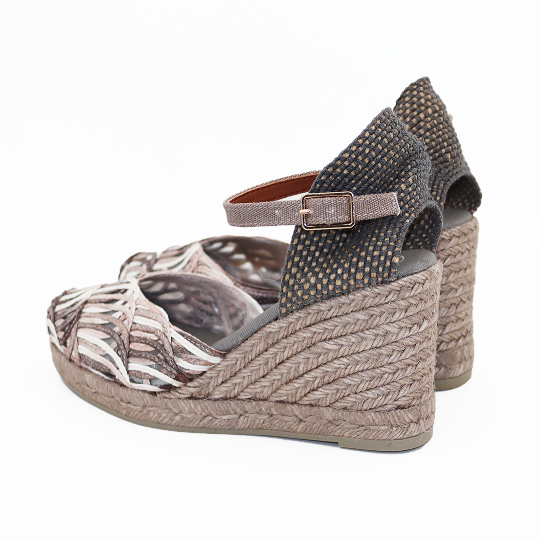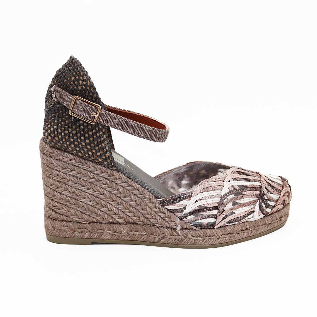Viguera špagerice u braon-sivoj ( taupe ) boji na ortoped đonu od plute i pletenim materijalom napred